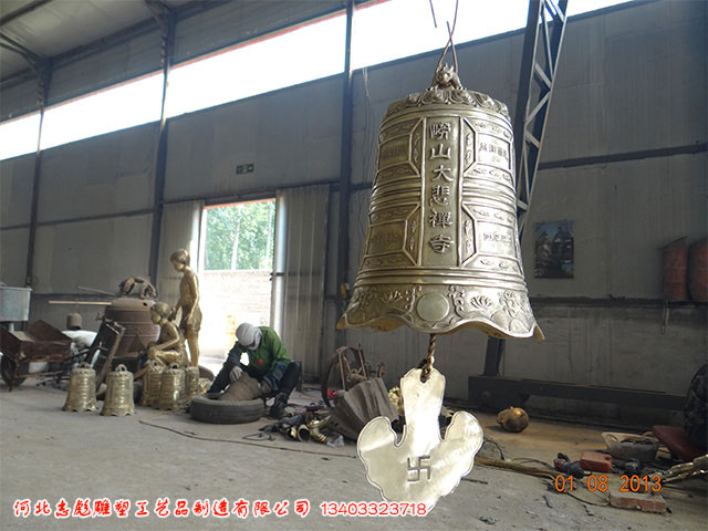 銅鐘、鐵鐘鑄造專業(yè)生產(chǎn)廠家訂做各種鑄銅鐘、大型鐵鐘,歡迎聯(lián)系我們進行訂做。我廠多年來專業(yè)制作銅鐘,鑄銅銅鐘,寺廟鐘,銅鐘雕塑等各種大小造型銅工藝品,志彪銅鐘廠可根據(jù)客戶提供鑄銅鐘批發(fā)制作業(yè)務(wù),圖片和價格請聯(lián)系,歡迎購買。