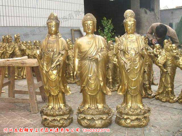 河北志彪銅雕佛像制作中心,專心研究佛像雕塑的鑄造,其中西方三圣像物美價廉歡迎垂詢:13403323718