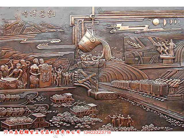 作為浮雕創(chuàng)作的重要表現(xiàn)形式、鍛銅浮雕依其金屬材料所特有的質(zhì)感和視覺效果,在壁畫、壁飾作品中發(fā)揮著重要的作用,是金屬浮雕的重要表現(xiàn)形式。鍛銅浮雕是以銅及銅合金板材為主要材料,各類有色金屬及黑色金屬板材并用,通過錘鍛加工制成金屬藝術(shù)品或工藝品