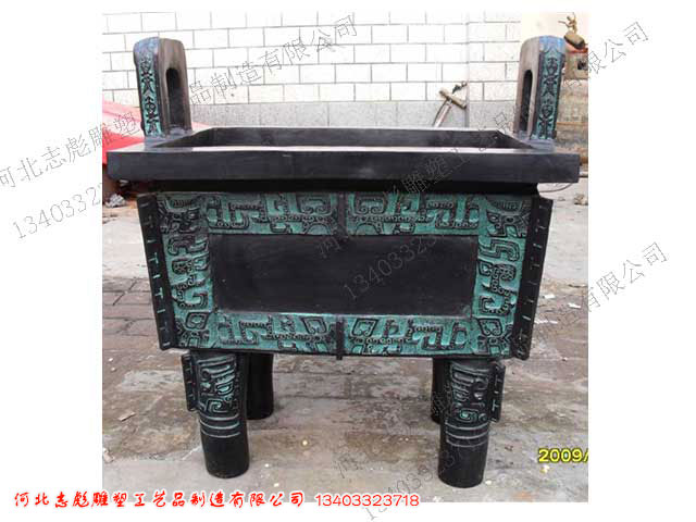 方鼎兩耳四足的方形飪食器。 商 周 時(shí)代流行并多用作祭器,如考古出土的獸面乳釘紋方鼎、司母戊方鼎、禾大方鼎等。我公司可以定做仿古方鼎、現(xiàn)代銅鼎,做工精湛,是您的首選。