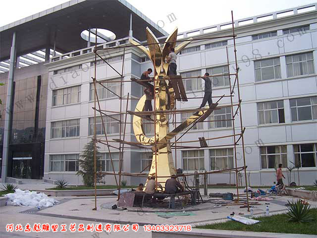 某客戶訂購的志彪公司的大型不銹鋼雕塑正在緊鑼密鼓的安裝中。