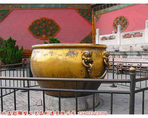 仿古銅缸一般擺放在廣場或者園林中,具有很好的裝飾作用,仿古銅缸擺放在家中有很好的鎮(zhèn)宅避兇的作用.