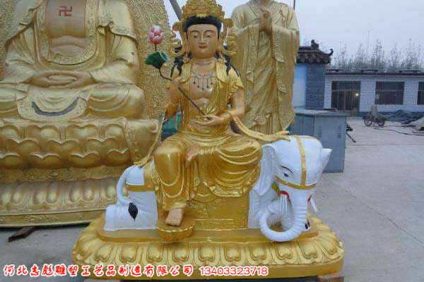 普賢菩薩雕塑是我們生活中常見的西方三圣的一位,在我們生活中有著非常廣泛的應(yīng)用,同時(shí)在我國民間也有著非常廣泛的影響力,隨著銅雕技術(shù)的不斷發(fā)展及佛教的影響力越來越廣泛,生活中常見的銅佛像越來越多,普賢菩薩就是其中最為常見的一種,普賢菩薩 (梵文 Samantabhadra),音譯為三曼多跋陀羅,曾譯為遍吉菩薩,大乘佛教的四大菩薩之一,象征著理德、行德,與象征著智德、正德的文殊菩薩相對(duì)應(yīng),同為釋迦牟尼佛的左、右脅侍。此外,毗盧遮那如來、文殊菩薩、普賢菩薩被尊稱為“華嚴(yán)三圣”。普賢菩薩,世稱為十大愿王普賢菩薩是理德和大行愿的象征,象征真理。他以智導(dǎo)行,以行證智,解行并進(jìn),完成求佛者的志愿,所以又稱“大行普賢菩薩”。