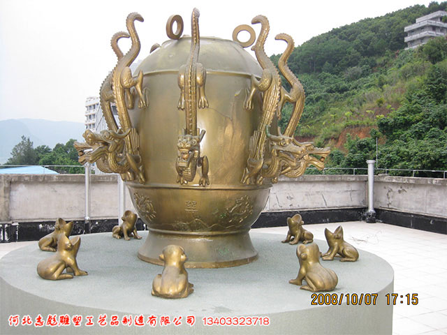 地動(dòng)儀銅雕是采用鑄造工藝制作而成的雕塑作品,我公司專業(yè)鑄造各種大型銅雕,地動(dòng)儀銅雕適用于園林、廣場等等寬廣的地方,設(shè)計(jì)美觀,為組合式雕塑作品。