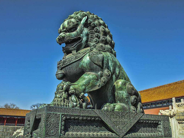 銅獅子,北京故宮獅,北京故宮獅圖片,做故宮獅來(lái)河北盛鼎銅雕,故宮分外朝內(nèi)廷。外朝的最南端,前面是太和門。門前有一對(duì)青銅獅子,威嚴(yán)、兇悍,成了門前橋頭的守衛(wèi)者,象征著權(quán)力與尊嚴(yán)?;实圪F為天子,門前的獅子自然最精美、最高大了。東邊立的為雄獅,前爪踏著一圓球,象征四海統(tǒng)一,江山永固;古邊的為雌獅,前爪下有一只幼獅,象征皇權(quán)永存,千秋萬(wàn)代。