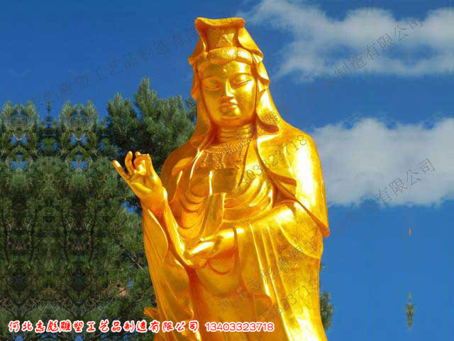 觀音:慈眉善目,和藹可親,表情莊重,擁有一顆真正的慈悲心,對待一切事物清凈平等,遍游法界,渡化眾生遠離煩惱和罪惡,臉部隱隱約約流露出喜悅的微笑,充分具有慈祥之美。[觀音菩薩]塑像形象多樣化。以他的姿態(tài)跟場景和手持法器來區(qū)別觀音菩薩形貌,[觀世音]的名字蘊涵了菩薩心腸慈善、濟助世人的思想和功德。