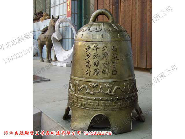 大銅鐘發(fā)音宏亮而悠揚,自佛教傳入中國始,銅鐘就逐漸成為佛教寺院中不可缺少的法器。銅鐘的節(jié)奏感強,它能表達(dá)人們的歡樂喜悅,又可以在生產(chǎn)勞動中協(xié)調(diào)人們的勞動步伐、在舞蹈中使舞姿整齊優(yōu)美、在練兵中使士兵步伐一致,以振軍威,因而在勞動生產(chǎn)中最需要這種樂器。現(xiàn)在寺廟的大銅鐘是不可缺少的。
